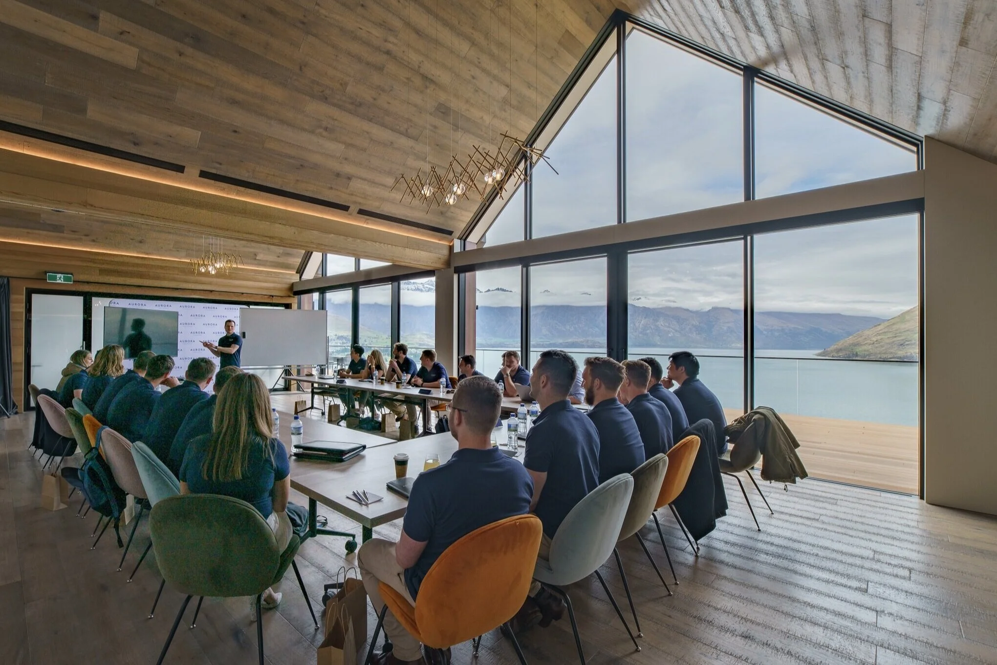 Our 220 ㎡ elegant space is the perfect location for the dream corporate retreat. Filled with light from the 6 m high floor to ceiling windows, this superbly designed area features the best views in Queenstown. This space incorporates The Ledge, Tiro and Cocoon