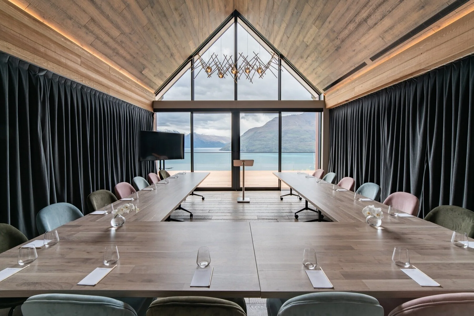 These two adjacent unique 38 ㎡ spaces are perfect for intimate meetings with a WOW factor. They both features the same breathtaking views of Lake Wakatipu and The Remarkables range and floor to ceiling windows